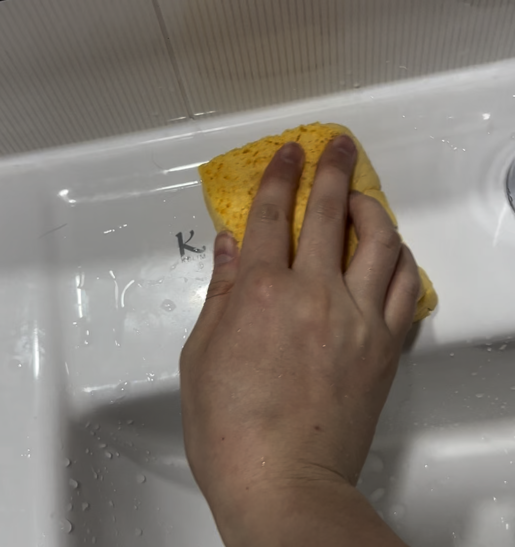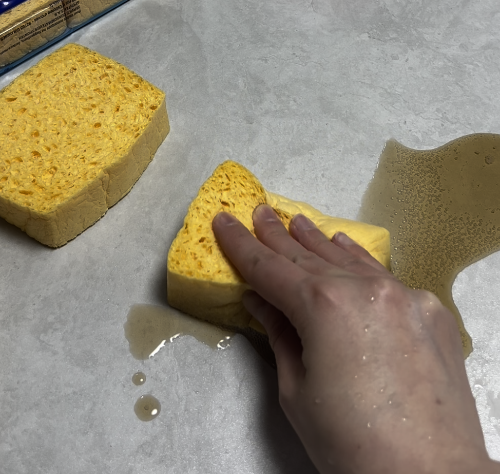 이 스펀지가 물기를 기막히게 잘닦아준다는