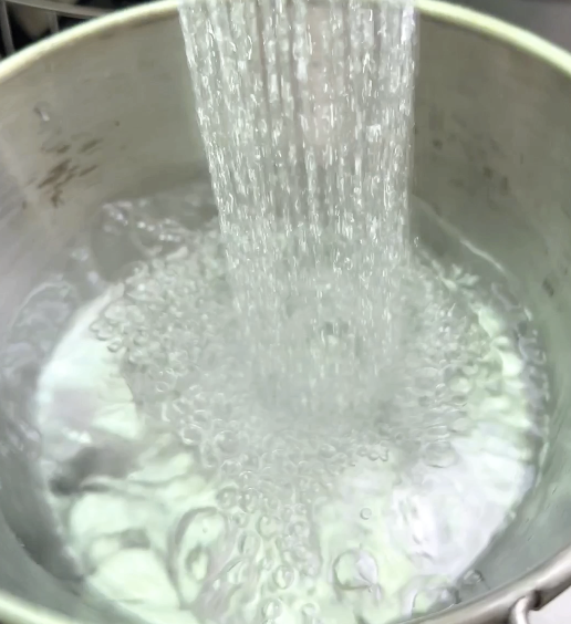 따뜻한 물 끓이려면 냄비에 물받아야돼요.