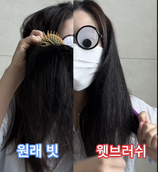 웻브러쉬로 빗으면서 빗으면